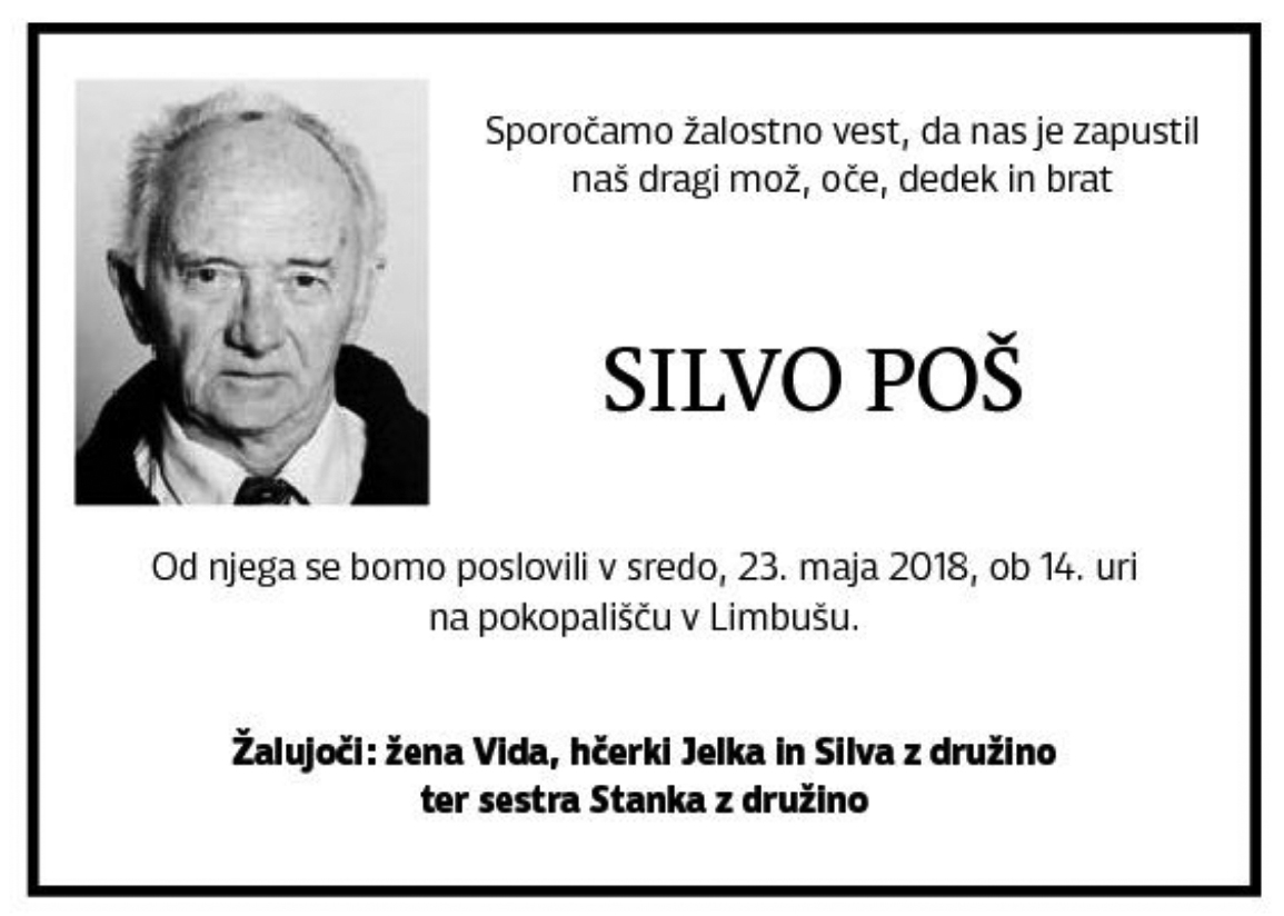 Osmrtnica Silvo Poš 2018